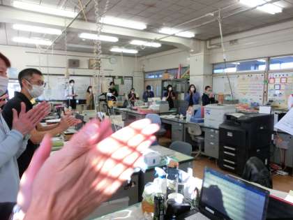弦中生活1 10月21日(金) 公開日 2022/10/21 更新日 2022/10/21 校長室より 朝の職員打ち合わせで、明日から愛媛県で行われるJOC第53回U16陸上競技大会の壮行会を行いました。選手として全国大会で頑張ってきてください。弦中の教職員一同応援しています。 当日は、ライブ配信されるそうです。 生中継📺👉 https://hdstream4k.live/athelatics いいね(0)
