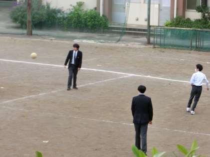 昼休みに校庭で遊んでいる様子です。