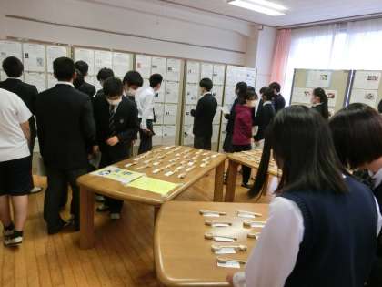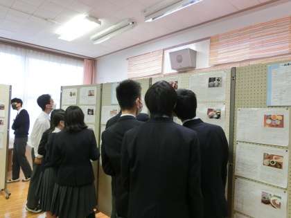 学発展示部門1 10月25日(火) 公開日 2022/10/26 更新日 2022/10/26 校長室より 学芸発表会展示部門、生徒鑑賞日です。6時間目の3年生の展示見学。ランチルームに展示されている2年生を見学中。 いいね(0)