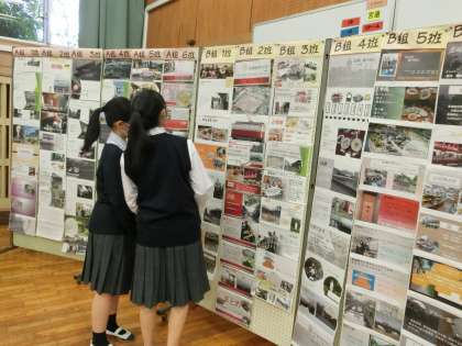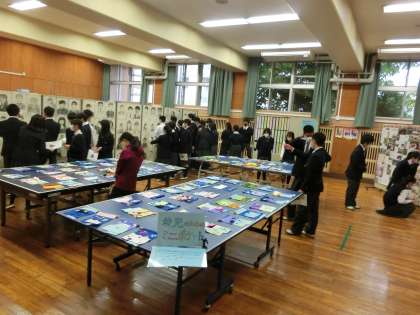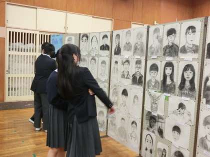 3年生の美術の自画像、修学旅行のプレゼン資料、どれも見ごたえがあります。修学旅行の俳句もありました。