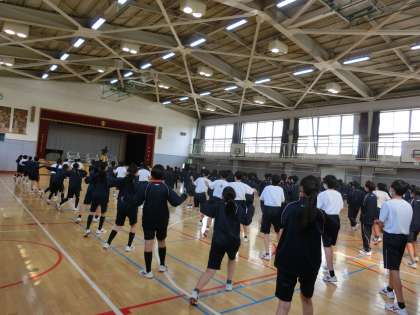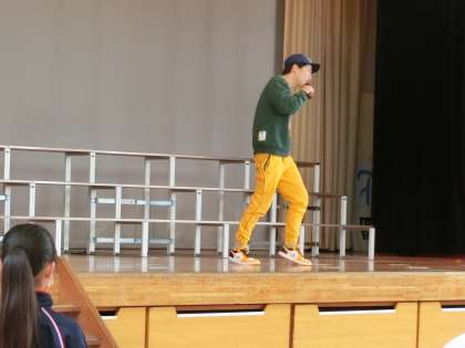 ダンスプロジェクト1年生1 10月27日(木) 公開日 2022/10/27 更新日 2022/10/27 校長室より 4時間目にあらた先生に来ていただき、弦中ダンスを教えていただきました。 いいね(0)