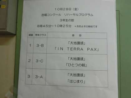 学年リハーサル3年生1 10月28日(金) 公開日 2022/10/28 更新日 2022/10/28 校長室より 明日の合唱コンクールに向けて、学年リハーサルを行いました。1時間目は3年生のスタートです。 いいね(0)