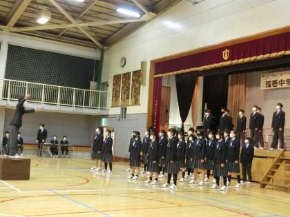 3番目は、A組です。男女のハーモニーが美しく、体育館いっぱいに響いていました。とても良かったです。退場の時の満足した表情が印象的でした。明日も楽しみですね。