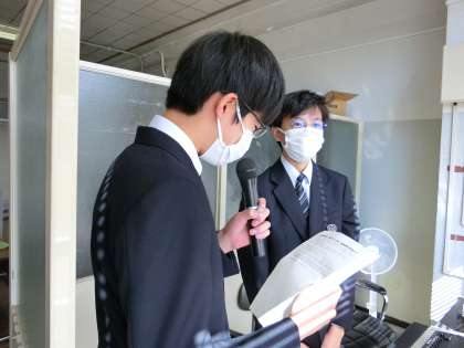 皆さん、こんにちは。合唱コンクール実行委員長の○○です。
