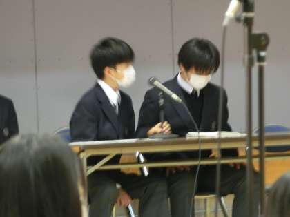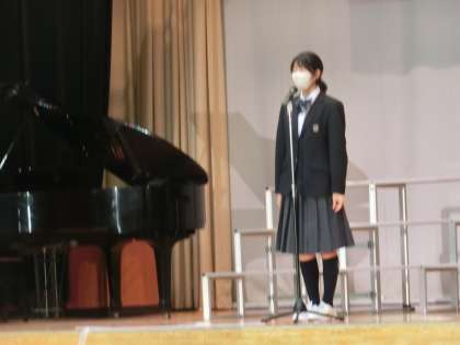 学発舞台部門合唱コンクール4 10月29日(土) 公開日 2022/10/29 更新日 2022/10/29 校長室より 開会式。 まずは、実行委員会副委員長の言葉。続いて、校長先生のあいさつです。 いいね(0)