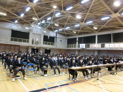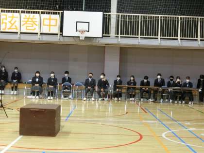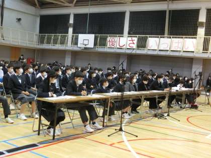 合唱コンクール3年生1 10月29日(土) 公開日 2022/10/29 更新日 2022/10/29 校長室より いよいよ3年生の合唱です。気合の入った力強い歌声を1・2年生に聞かせることができるでしょうか。緊張します。体育館には、3年生の合唱を今か今かと待っている1・2年生が静かに待っています。 いいね(0)