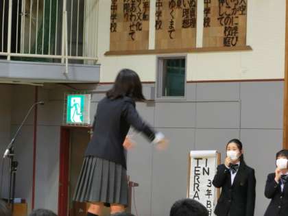 自由曲「インテラパックス」も、これ以上ないくらいの気合の入った「インテラパックス」。弦巻中に確実に爪痕を残す最高の合唱でした。体育館に大きな大きな拍手が響きました。