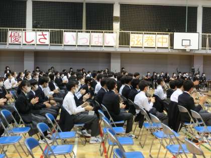 合唱コンクール閉会式2 10月29日(土) 公開日 2022/10/29 更新日 2022/10/29 校長室より 1曲目の演奏が始まりました。体育館中が手拍子で一体化。合唱コンクールの静寂と対象的に、みんなノリノリです。 いいね(0)