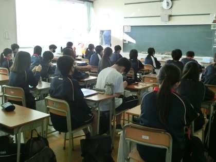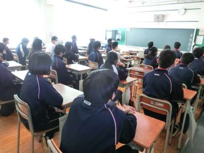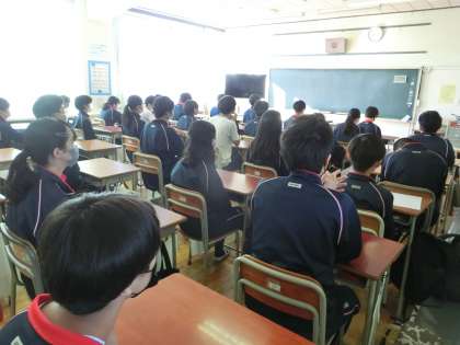 そのあと生活指導主任の坂本先生からのお話がありました。教室で、放送に耳を傾けてしっかりと聞いていました。