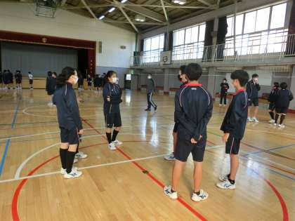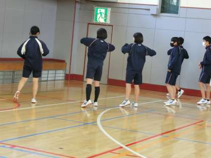 3年生のダンスの授業。グループ別にダンスを考えています。