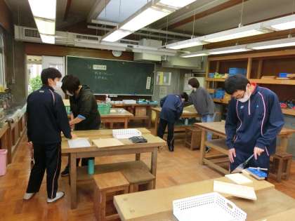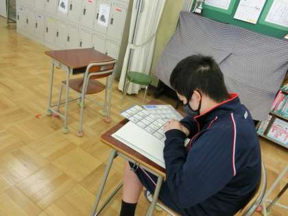 I組作業の授業。百人一首の暗唱も頑張っていました。