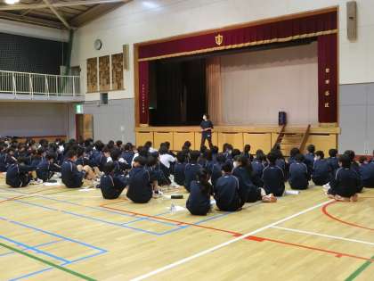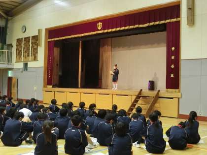 1年生ダンス発表会1 11月29日(火) 公開日 2022/11/30 更新日 2022/11/30 校長室より 5・6時間目、1年生のダンス発表会です。 いよいよはじまります。 まずはA組の発表です。 いいね(0)