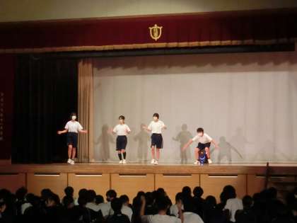 今年度同じ曲で、基本の振り付けを覚えてそれをアレンジして発表する初の取組でしたが、1年生の全部のグループが、工夫をしながら素敵なダンスを創り上げたと思います。来年度がまた楽しみです。