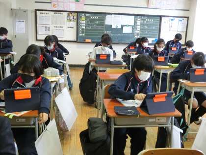 弦中生活9 11月29日(火)〜12月1日(木) 公開日 2022/12/01 更新日 2022/12/01 校長室より 1年A組、理科の授業。マイタブレットを使って、調べ・まとめ学習を行いました。シーンと静まり返った教室。集中する生徒の姿しかありませんでした。 いいね(0)