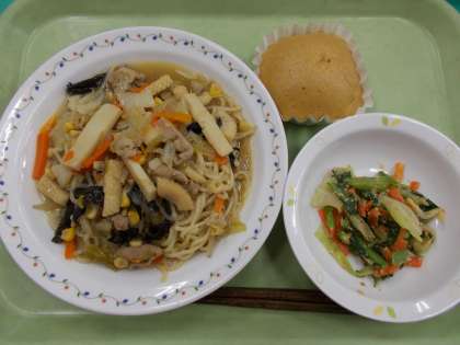 12月13日の給食 公開日 2022/12/15 更新日 2022/12/15 給食 13日の献立 ・ちゃんぽん ・野菜のごまみそあえ ・さつまいも入り黒糖蒸しパン 食材産地【生鮮食品】 にんにく:青森 生姜:高知 人参:千葉 玉ねぎ:北海道 キャベツ:愛知 もやし:栃木 長ねぎ:千葉 さつまいも:千葉 小松菜:茨城 イカ:青森 豚肉:青森 いいね(0)
