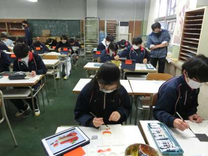 美術室では、2年生の授業でした。