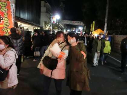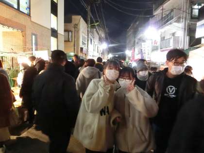 人出も多く、ボロ市通りは活気があふれていました。弦中生にも会いました。例年に比べるとまだまだ少ないようですが、それでも多くの人出に驚きました。