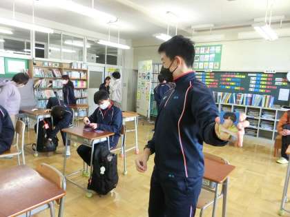 I組ボロ市見学を終えて、学校へ戻ってきました。たくさん歩いたのでくたくたですが、自分が買ったものに大満足。見せあいっこしていました。
