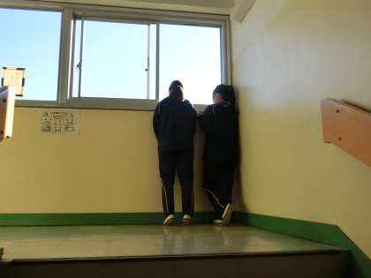 校舎内で過ごしている人、図書館に行く人さまざまです。