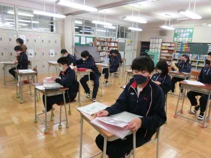 I組は2学期の振り返りをしていました。キャリアパスポートはお持ち帰りですね。