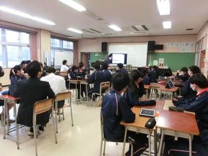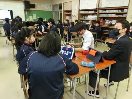 音楽の時間は、一人一人がタブレットを使って作曲した曲をみんなに披露する時間でした。