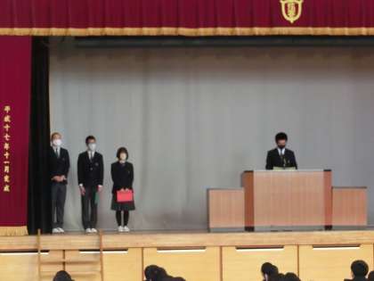 2学期終業式3 12月23日(金) 公開日 2022/12/23 更新日 2022/12/23 校長室より 校長先生のお話の内容は、本日配布された「学校だより第8号」を読んでください。 そのあと、学年代表から、2学期の振り返りを発表してもらいました。 いいね(0)