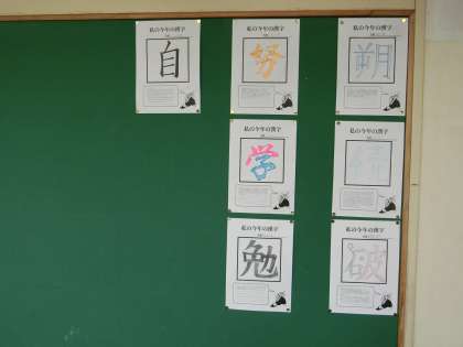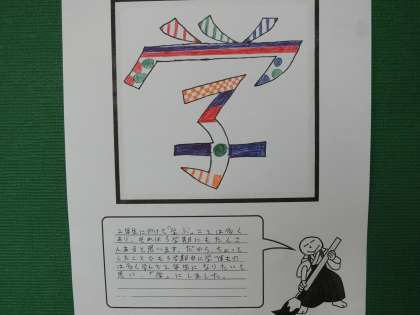 教室の中には、冬休みの課題「書初め」が掲示されています。それも見てください。