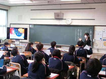 道徳授業地区公開講座1 1月14日(土) 公開日 2023/01/16 更新日 2023/01/16 校長室より 1年生の授業です。 教材は「花に寄せて」テーマは「生きることの素晴らしさを感じて」です。 いいね(0)