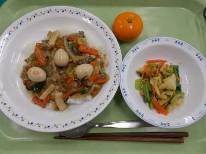 今日の給食で提供する予定だった柑橘の「クレメンティン」ですが、鳥やイノシシに食べられてしまった影響で、十分な量が収穫できなかったため「石地みかん」という佐賀県産のみかんに変更しています。