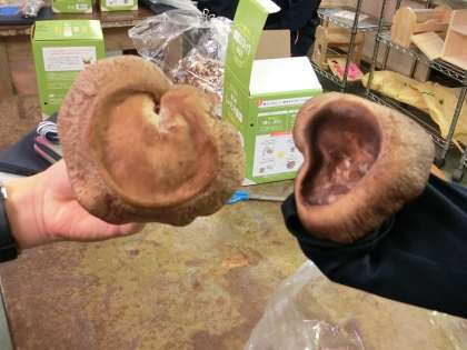 ハート形の大きなきのこを見せてくれました。お家で料理して食べてください。