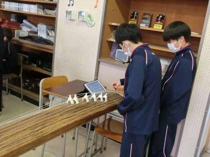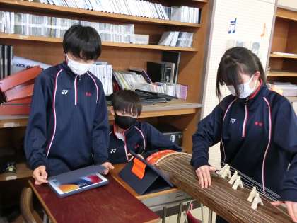 今日の弦中生5 1月18日(水) 公開日 2023/01/18 更新日 2023/01/18 校長室より I組の教室では、日課帳を書いていました。毎日の取組えらいですね。 音楽室では、1年生がお琴の授業です。 いいね(0)