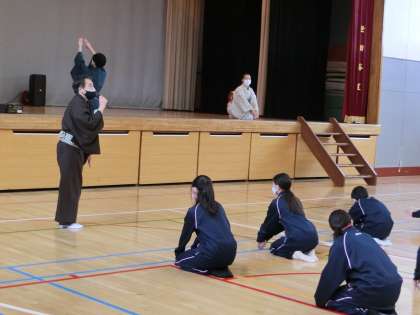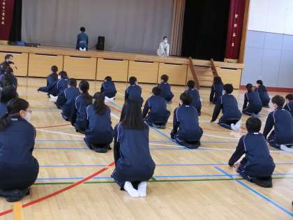 1年生日本舞踊体験授業1 1月23日(月) 公開日 2023/01/24 更新日 2023/01/24 校長室より 日本舞踊体験授業です。 令和4年度「子供のための伝統文化・芸能体験事業」として、日本舞踊家の皆さんに日本舞踊を教えていただきました。 3・4時間目のBC組です。 いいね(0)