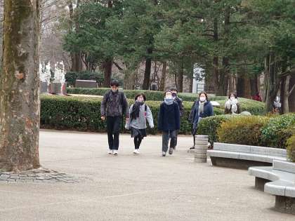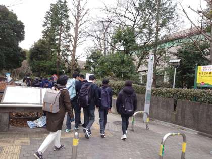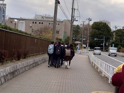 バスに乗って世田谷美術館に着きました。バスは2台に分かれて乗りました。