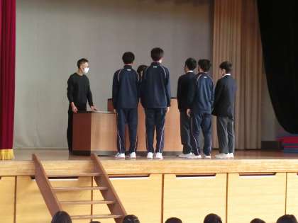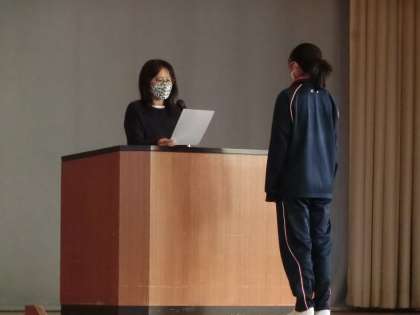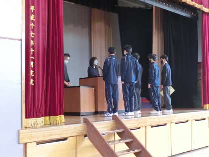 全校朝礼では、表彰も行いました。
