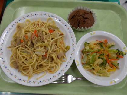 給食室からはココアマフィンを提供しています。