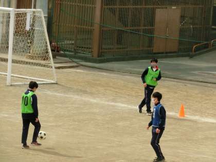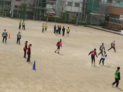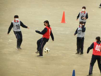 体育の授業。男女共修で頑張っています。