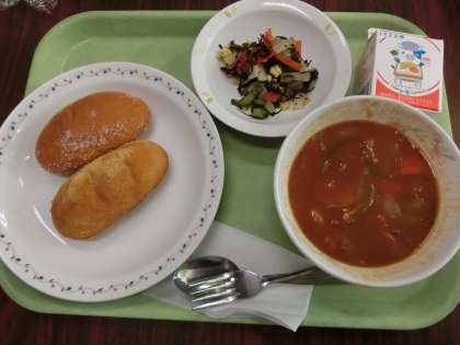 リクエスト給食。2色の揚げパン。美味しかったな。
