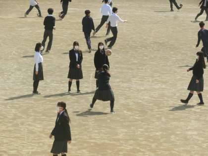 昼休み。標準服を着ている人が多い感じがします。3年生の卒業式練習があるからかな?