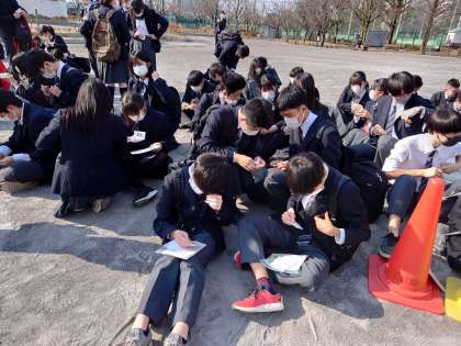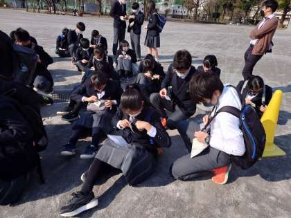 各班にゲームグッツが配られました。みんな名札をつけて!!