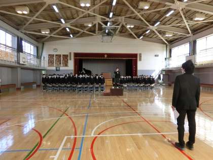 土曜授業日1 3月11日(土) 公開日 2023/03/11 更新日 2023/03/11 校長室より 3年生卒業式練習。もう何度目なのでしょうか。後ろから見ていましたが、起立・礼、3年生の気持ちがこもっていて「ビシッ」と決まっていました。 いいね(0)