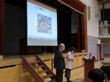 同窓会会長・副会長にご来校いただき、3年生に同窓会のお話をしていただきました。
