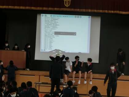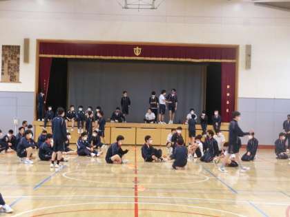 3年生学年レク1 3月13日(月) 公開日 2023/03/13 更新日 2023/03/13 校長室より 班に分かれてビンゴゲームです。 ビンゴゲームの内容は、3年間の思い出。 「1年生入学式は6月○日」「河口湖移動教室中止」「はじめての定期テスト」などなど。 あんなこともこんなこともあったなと振り返ることができました。 いいね(0)