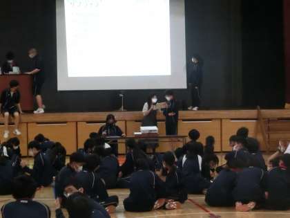 3年生学年レク8 3月13日(月) 公開日 2023/03/13 更新日 2023/03/13 校長室より 黒澤先生の小芝居により、急きょ私がスペシャルビンゴをすることになりました。 イエーイ!! いいね(0)