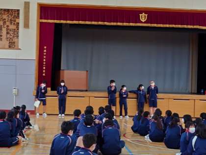 3年生学年レク14 3月13日(月) 公開日 2023/03/13 更新日 2023/03/13 校長室より 最後は、学級委員からの一言ずつがありました。 楽しく仲間を思いやるひと時になったこと、学級委員や実行委員のお陰です。 ありがとうございます。 お疲れさまでした。午後は、3年生で奉仕活動をしていました。 いいね(0)