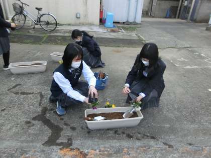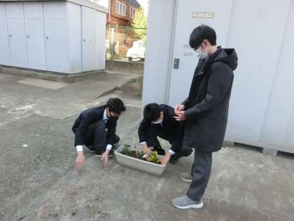 毎年この時期に、ボランティアのみなさんのおかげで、玄関が明るくなりますね。毎日の水やりもお願いします。