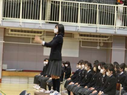 式歌「あなたへ」です。3年生のパワーのすべてがこもった、素晴らしい合唱です。
