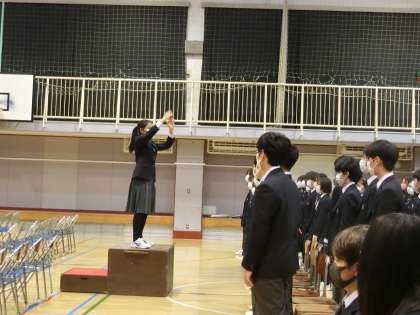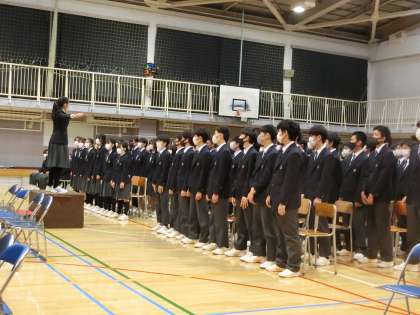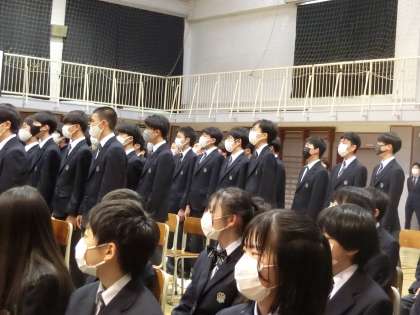 2年生と一緒に歌う「旅立ちの日に」。1番は2年生が歌います。