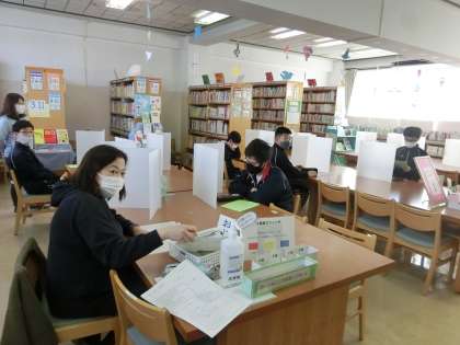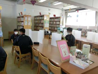 3年I組は、図書室で図書の時間です。今までどんな本を読みましたか。