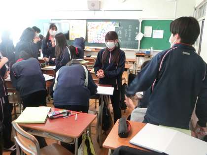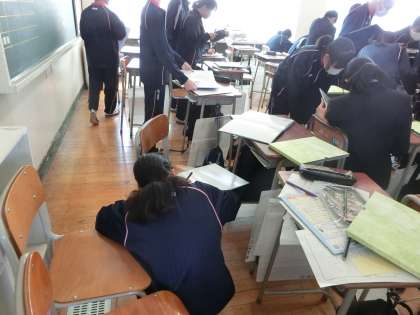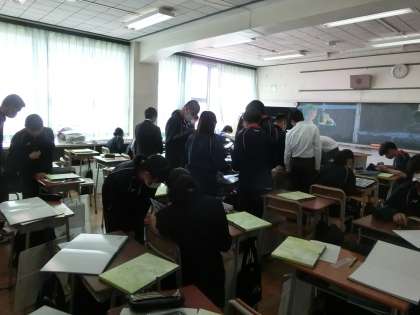 3年生は、卒業アルバムが配られて、サイン会中です。