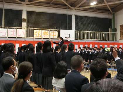 2番は、3年生が歌って、錆は、2年生徒3年生の掛け合いになって、声がそろっていきます。本当に本当に素晴らしい弦中生です。